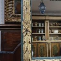 Elegante specchiera in legno di cirmolo intagliato e dorato a foglia d’oro zecchino, dipinta nella tonalità del verde antico. La cornice è decorata da foglie d’alloro sovrapposte e nodi agli angoli, conferendo ulteriore eleganza. Lo specchio è in buone condizioni e originale. Si tratta di una specchiera di grande classe e fascino, capace di arredare con cura e raffinatezza qualsiasi ambiente. Manifattura toscana del periodo neoclassico, databile alla seconda metà del XVIII secolo.