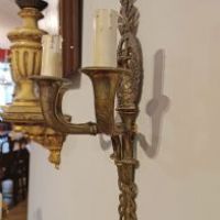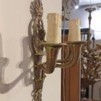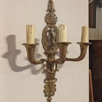Raffinata coppia di appliques in bronzo fuso a cera persa, cesellato e dorato. Le appliques presentano tre luci, con bracci a forma di cornucopia e sono elettrificate. La loro decorazione è di stile geometrico e fitomorfo, che conferisce grande eleganza agli oggetti, arricchita dalla presenza di un serpente nella parte superiore. Questa coppia di appliques, di grande gusto e classe, è in grado di arredare con raffinatezza qualsiasi ambiente. È inoltre possibile avere una terza applique. Manifattura italiana del periodo Napoleone III, intorno alla metà del XIX secolo.