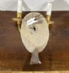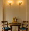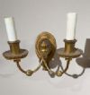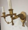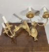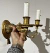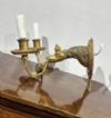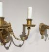 Elegante coppia di appliques in legno intagliato e dorato a foglia d’oro zecchino. Queste raffinate appliques sono dotate di due luci ciascuna e sono elettrificate. La loro particolarità risiede nell’arte dell’intaglio: al centro delle applique sono scolpiti delicati volti di uccelli immaginari, finemente lavorati, dai cui becchi si diramano i due bracci che sostengono le luci. I bracci presentano una forma curva e sono impreziositi da decorazioni geometriche, conferendo loro un aspetto elegante e sofisticato. Questa coppia di appliques rappresenta un oggetto di grande gusto e raffinatezza, capace di arricchire con stile e classe qualsiasi ambiente. Manifattura italiana, del periodo Napoleone III, intorno alla seconda metà del XIX secolo.