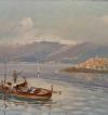 DIPINTO CON MARINA E BARCHE PRIMA META’ XX SECOLO