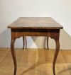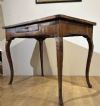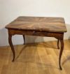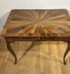 Elegante scrittoio interamente lastronato in legno di noce e legno di ulivo, impreziosito da intarsi sul piano. Il tavolo si distingue per le gambe leggermente curve, tipiche dello stile dell'epoca, e per un cassetto centrale ergonomico, ideale per riporre piccoli oggetti. A valorizzare ulteriormente la sua raffinatezza sono gli intarsi sul piano, realizzati in motivo geometrico a spicchi, che creano giochi di luci e ombre raffinati. Questo tavolo può essere utilizzato sia come tavolo d’appoggio che come scrittoio da centro stanza, aggiungendo un tocco di classe e di eleganza a qualsiasi ambiente. Manifattura toscana, del periodo Luigi XV, intorno alla metà del XVIII secolo.
