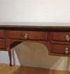 Refinado escritorio chapado en madera de nogal y palisandro, realzado con incrustaciones geométricas en la tapa realizadas con filetes de madera de frutales. El escritorio destaca por sus patas ligeramente curvadas, típicas de la época, y presenta un chapado a la vista, ideal para colocarlo incluso en el centro de la habitación. Dispone de cinco cajones ergonómicos, que se abren con tiradores de bronce, y son perfectos para guardar objetos de forma práctica. Se trata de un escritorio de gran gusto y sofisticación, capaz de decorar con clase cualquier ambiente. Fabricación toscana del período Luis XV, alrededor de la mitad del siglo XVIII.