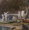 DIPINTO CON BAGNANTI AL FIUME FINE DEL XVIII SECOLO