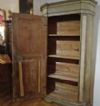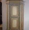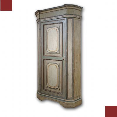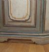Raffinato stipo dipinto a tempera magra, nei toni del verde, giallo e bruno. Lo stipo presenta piedi a mensola tipici del periodo, una parte superiore finemente modanata e una forma concava. Particolarità del mobile, probabilmente originariamente integrato in una boiserie, fungendo da stipo semi-nascosto. Sul fronte, i decori pittorici raffigurano motivi geometrici a losanghe, conferendo ulteriore raffinatezza. Lo stipo è dotato di una serratura e di una chiave in bronzo dorato, che permettono di aprire l’anta del mobile, rivelando quattro ripiani ergonomici ideali per riporre oggetti. Si tratta di un mobile di grande gusto e raffinatezza, in grado di donare un tocco di classe a qualsiasi ambiente. Manifattura marchigiana (centro-Italia) del periodo Luigi XIV, primi del XVIII secolo.
