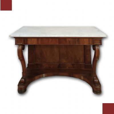 CONSOLLE CARLO X IN NOCE E MARMO DI CARRARA PRIMO XIX SECOLO