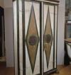Raffinato stipo in legno massello di castagno, intagliato e dipinto a tempera magra, privo di sottofondo gessoso. Lo stipo si distingue per piedi lineari, una terminazione superiore a modanature e due ante. Di queste, una è apribile mediante chiave e serratura, mentre l’altra è dotata di serratura interna ad incastro; entrambe si aprono su quattro ripiani ergonomici ideali per riporre oggetti. La decorazione pittorica del mobile è di grande raffinatezza e in parte ridipinta, presente sia sul fronte che sui lati, e si caratterizza per motivi geometrici, lineari e a rombi, nei colori del bianco, giallo, verde e rosso. Si tratta di un mobile di grande gusto ed eleganza, capace di donare un tocco di classe e di antichità a qualsiasi ambiente. Manifattura Toscana-umbra (centro-Italia), intorno agli inizi del XVIII secolo.