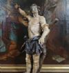 Elegante ed unica scultura in legno di cirmolo, finemente intagliata e dipinta. Il santo è raffigurato legato ad un tronco, che funge anche da supporto per la scultura. È rappresentato in piedi, con il petto scoperto, sul quale sono presenti delle frecce in legno, come nella iconografia tradizionale. Questa opera mette in risalto la raffinatezza stilistica dei dettagli, la delicatezza degli intagli e la perfezione delle pitture. Si tratta di una scultura dal grande gusto e raffinatezza, capace di aggiungere un tocco di classe ed antique a qualsiasi ambiente. Manifattura ascrivibile alla scuola veneta metà XVIII secolo.
