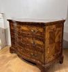 Bellissimo e raffinato cassettone veneto, caratterizzato da un fronte mosso e lastronato in radica di noce e radica di acero. Presenta un basamento lineare a mensola che conferisce al mobile una grande stabilità. Questo cassettone è inoltre estremamente pratico ed ergonomico, grazie alla presenza di tre ampi cassetti che consentono di organizzare facilmente gli oggetti al loro interno. Le cerniere e le maniglie in bronzo fuso a cera persa, e successivamente dorato, donano un tocco di eleganza e preziosità al mobile. La lavorazione artigianale veneta di questo cassettone può essere attribuita alla prima metà del XVIII secolo, intorno al 1740. La perfetta eleganza di questo mobile lo rende un'ottima aggiunta per arricchire e conferire un tocco di raffinatezza ad ogni ambiente.