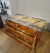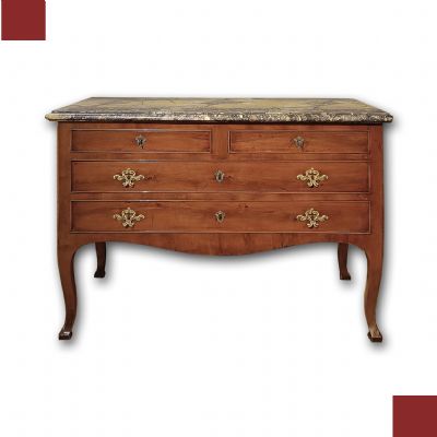 Splendido e raffinato cassettone realizzato in legno massello e lastronatura di ciliegio. Le gambe e il gonnellino ricurvi gli conferiscono un tocco di eleganza, mentre gli interni in pioppo offrono un'eccellente qualità e durata nel tempo. Il cassettone dispone di quattro spaziosi cassetti, due più piccoli e due più larghi, ideali per riporre oggetti di varie dimensioni. Le maniglie in bronzo fuso a cera persa, cesellato e dorato aggiungono un tocco di lusso e raffinatezza al mobile. Il piano in pietra lastronato in marmo giallo di Siena con venature marroni e rifinito a becco di civetta è un dettaglio di pregio che conferisce ulteriore eleganza e unicità al cassettone. Bellissimo ed elegante, questo mobile è in grado di arricchire e valorizzare qualsiasi ambiente con classe e raffinatezza. Tipica manifattura senese nel periodo di transizione tra lo stile Luigi XV e Luigi XVI, seconda metà XVIII secolo (1760 ca.).