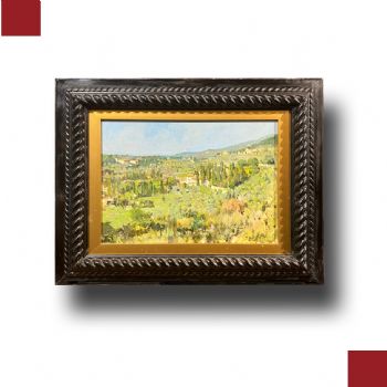 'DALLA PIAZZA DESIDERIO A SETTIGNANO', OLIO SU TAVOLETTA, XX SECOLO