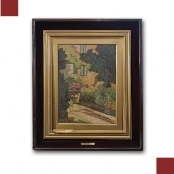 DIPINTO SCORCIO DI GIARDINO INIZI XX SECOLO