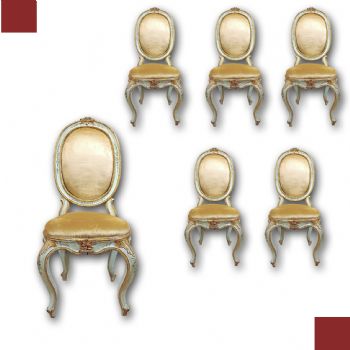 SEI SEDIE LUIGI XV IN LEGNO LACCATO, DIPINTO E DORATO META’ XVIII SECOLO