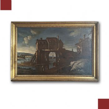 DIPINTO CON PAESAGGIO E FIGURA FINE XVII SECOLO