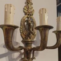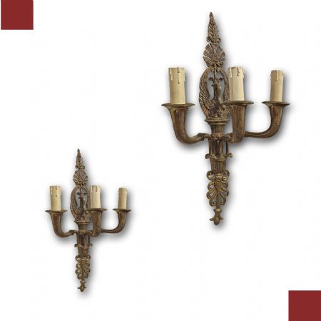 Raffinata coppia di appliques in bronzo fuso a cera persa, cesellato e dorato. Le appliques presentano tre luci, con bracci a forma di cornucopia e sono elettrificate. La loro decorazione è di stile geometrico e fitomorfo, che conferisce grande eleganza agli oggetti, arricchita dalla presenza di un serpente nella parte superiore. Questa coppia di appliques, di grande gusto e classe, è in grado di arredare con raffinatezza qualsiasi ambiente. È inoltre possibile avere una terza applique. Manifattura italiana del periodo Napoleone III, intorno alla metà del XIX secolo.