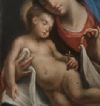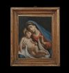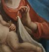 Bel dipinto ad olio su tavoletta lignea, inserito in una cornice d’epoca in legno intagliato e dorato a foglia d’oro, alla quale sono stati aggiunti supporti lignei sempre dell’epoca per adattarlo alla cornice. Nel dipinto è raffigurata la Madonna che svela il bambino Gesù. La donna indossa abiti canonici, con una veste rossa e un velo blu, sormontati da una sottile aureola di stelle. Con le mani tiene la fasciatura del bambino Gesù, che è nudo con una raggiante aureola. Di questo quadro si apprezza la resa stilistica dei dettagli e la dolcezza espressa, evidenziata dalle teste della madre e del figlio che si toccano e dai loro sguardi intensi. I colori sono originali e si segnalano infine pochissimi restauri. Si tratta di un dipinto di grande gusto e stile, in grado di conferire eleganza e un tocco di antichità a qualsiasi ambiente. Manifattura ascrivibile alla Scuola Veneta, intorno alla fine del XVIII secolo.