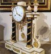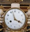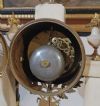 Raffinato orologio a tempietto di grandi dimensioni. L’orologio presenta una struttura in marmo bianco statuario, decorata con colonne in marmo nero di Belgio e partizioni in bronzo fuso a cera persa finemente dorato. Le decorazioni richiamano lo stile classico, con piccoli vasi, motivi floreali, geometrici, fitomorfi e figurativi. Il quadrante è apribile e presenta numeri arabi, con lancette in bronzo dorato e la firma “Lépine Paris”, ascrivibile all’orologiaio. Il meccanismo, originale e funzionante, è dotato di sospensione a filo di seta e una carica settimanale, che suona le ore e le mezze ore. Si tratta di un orologio di grande gusto e raffinatezza, capace di arredare con eleganza qualsiasi ambiente. Manifattura francese del periodo Direttorio, intorno alla fine del XVIII secolo.