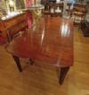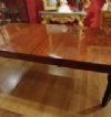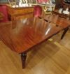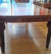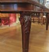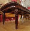 Raffinato tavolo in massello di mogano, finemente intagliato. La sua forma è rettangolare, con bordi stondati e una fascia liscia sul sottopiano. Ad aggiungere ulteriore eleganza vi è la decorazione degli intagli sulle gambe, caratterizzati da motivi geometrici e fitomorfi. Questo tavolo è molto pratico e comodo, in quanto dotato di un meccanismo a manovella posizionato al capotavola che permette di allungarlo e restringerlo facilmente, e che può essere sfilata. È presente una prolunga a giorno e può essere ulteriormente esteso di circa 60cm. Si tratta di un mobile di grande gusto e raffinatezza, in grado di arredare con classe qualsiasi ambiente. Manifattura inglese del periodo Carlo X, intorno alla prima metà del XIX secolo.
