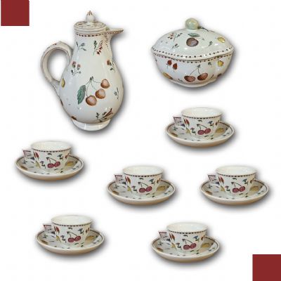 Raffinato servito da caffè, in porcellana policroma. Il servito si compone di: caffettiera, zuccheriera e sei tazze con piattino. Il set è decorato da decorazioni dipinte riguardanti fiori e frutta, e decorazioni geometriche, che donano ulteriore eleganza all’insieme. Si tratta di un classico servito della manifattura Ginori, ben conservato, in grado di donare un tocco di classe e raffinatezza all’arredamento di qualsiasi ambiente. Manifattura Ginori, del periodo Luigi XVI, intorno alla seconda metà del XVIII secolo (1780 ca.).