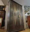 Raffinato stipo in legno massello di castagno, intagliato e dipinto a tempera magra, privo di sottofondo gessoso. Lo stipo si distingue per piedi lineari, una terminazione superiore a modanature e due ante. Di queste, una è apribile mediante chiave e serratura, mentre l’altra è dotata di serratura interna ad incastro; entrambe si aprono su quattro ripiani ergonomici ideali per riporre oggetti. La decorazione pittorica del mobile è di grande raffinatezza, presente sia sul fronte che sui lati, e si caratterizza per motivi geometrici, lineari e a rombi, nei colori del rosso, verde e giallo. Si tratta di un mobile di grande gusto ed eleganza, capace di donare un tocco di classe e di antichità a qualsiasi ambiente. Manifattura Toscana-umbra (centro-Italia), intorno agli inizi del XVIII secolo.