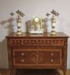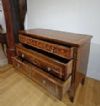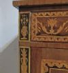 Suntuoso cassettone lastronato in legno di noce, impreziosito da intarsi in legno di frutto e pastiglia, tecnica tipica della scuola ebanista lombarda. Il cassettone presenta gambe troncopiramidali, caratteristiche del periodo, e una forma lineare ed elegante. Dispone di tre cassetti, di cui uno più piccolo posizionato sotto il piano, e due cassetti più grandi e ergonomici ideali per riporre oggetti, aperti mediante tiranti in bronzo. La grande raffinatezza di questo cassettone risiede nella sua decorazione ad intarsio, molto ricca e dettagliata, che si estende sul fronte, sulle gambe, sui lati e sul piano, presentando motivi geometrici e fitomorfi. Si tratta di un mobile di grande gusto e qualità, in grado di arredare con classe e raffinatezza qualsiasi ambiente. Manifattura lombarda (Lombardia, Italia), probabilmente ascrivibile alla scuola dell’ebanista Giuseppe Maggiolini, del periodo neoclassico, intorno alla fine del XVIII secolo.