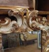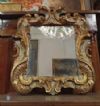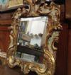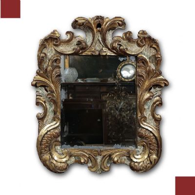 Bella specchiera di medio-piccole dimensioni, realizzata in legno intagliato e dorato con foglia d’oro, e dipinto a finto marmo. La cornice presenta riccioli vegetali che conferiscono un tocco di raffinatezza e classe all’oggetto. Lo specchio è in buone condizioni e conserva la sua originalità, mentre il fondo a protezione della specchiera è di epoca successiva. Questa specchiera di grande eleganza è in grado di arricchire con gusto qualsiasi ambiente. Si tratta di una manifattura marchigiana (Italia centrale) risalente al periodo Luigi XIV, alla fine del XVII secolo.