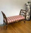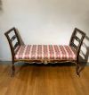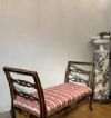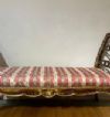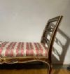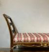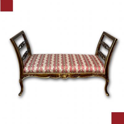 Il divanetto è un'elegante creazione di fattura toscana, appartenente al periodo Luigi XV, datata intorno al 1750 (metà XVIII secolo). Realizzato in legno intagliato e dorato, presenta delle spalliere laterali estroflesse che conferiscono un tocco di raffinatezza al suo design. Il divanetto è privo di una spalliera centrale, ma la comodità è assicurata dalla sua seduta imbottita. Le zampe del divanetto sono arcuate, che gli donano un aspetto leggero e sinuoso. Sulla seduta, invece, si possono osservare dettagli decorativi ispirati alla natura, con motivi fitomorfi e volute che si rincorrono creando un elegante intreccio di elementi floreali. Questi intagli, ricchi di precisione e maestria artigianale, conferiscono al divanetto un certo carattere e fascino. Nel complesso, questo raffinato divanetto in legno intagliato e dorato rappresenta un esempio notevole dell'arte mobiliera del periodo Luigi XV. La sua eleganza, con spalliere laterali estroflesse, seduta imbottita e zampe arcuate, ne fa un pezzo di arredamento dal design pregiato e intramontabile.