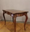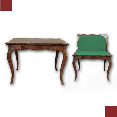 Elegante tavolino da gioco francese, risalente alla prima metà del XIX secolo (1820-1840 ca), caratterizzato da gambe mosse tipiche dello stile Luigi Filippo. Realizzato in pregiata radica di noce, questo tavolino da centro si trasforma facilmente in un ampio tavolo da gioco. Il piano si apre a libro, permettendo di raddoppiare la superficie utile, mentre il lato destinato al gioco è caratterizzato da un elegante panno verde. Grazie alle sue finiture raffinate e alle tarsie ricercate in radica di noce, questo tavolino aggiungerà un tocco di sofisticata eleganza a qualsiasi ambiente in cui verrà collocato. Un mobile unico e di grande pregio, ideale per chi ama lo stile classico e ricercato.