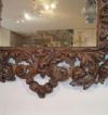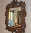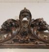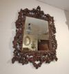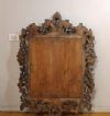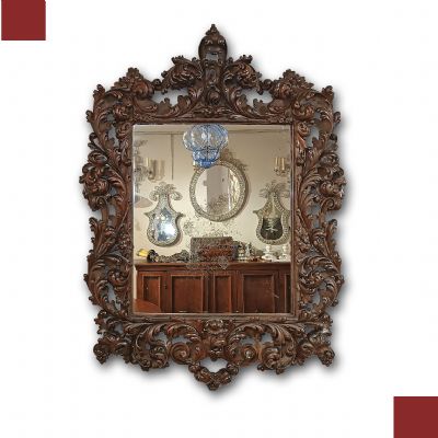 Refined mirror in solid walnut wood, hand-carved. The frame is distinguished by its elegance, enhanced by the carving of swirling vegetal motifs and small fruits that highlight its refinement. The crest is also finished with a delicate curl. The mirror is in good condition and, due to its elegance, is capable of furnishing any environment with taste and sophistication. Venetian manufacture (Northern Italy), probably belonging to the school of the master carver Brustolon, from the Louis XIV period, around the late 17th century. Measurements: H x W x D 121 x 89 x 6cm