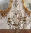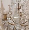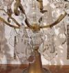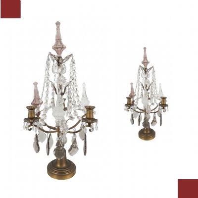 Refined pair of three-light candelabra, made of hand-turned bronze and decorated with crystals. The objects have a pyramidal shape, with three candle holders each, and are enriched with chains of hexagonal crystals, and embellished with drop-shaped, floral, and geometrically designed crystal pendants. In antiquity, candelabra were used as candle holders, ideal for decorating both a table and furniture. This is a pair of objects of great taste and refinement, capable of adding a touch of class and elegance to any environment. Italian craftsmanship, Neoclassical style, mid-19th century.